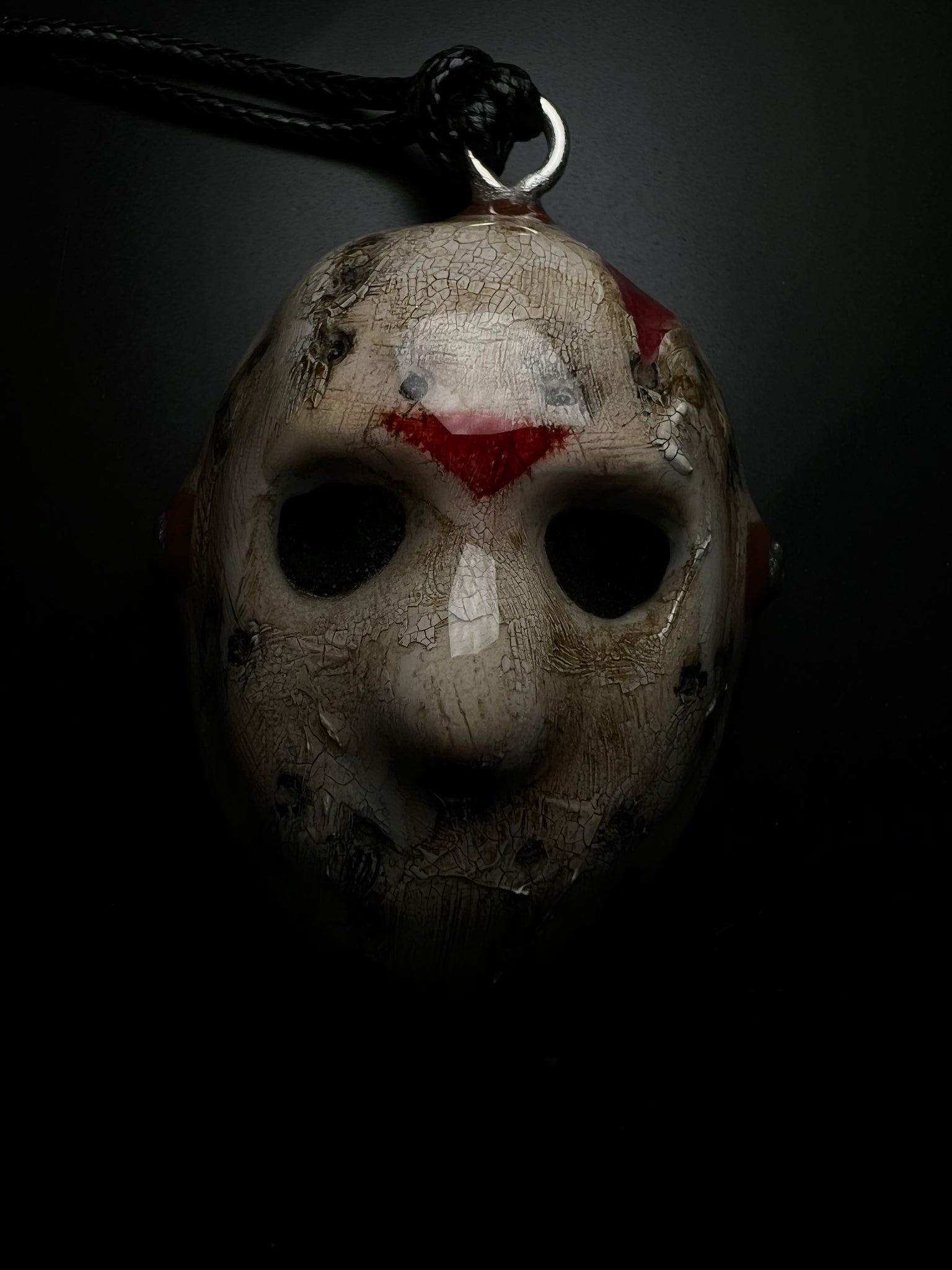 Your favorite Hockey masked killer! Necklace that is sure to make you lose your head!. Comes with 22’’ leather type cord. Please choose Regular or Nes from options. Photos are examples, there will be slight variations in paint as these are Hand Made one of a kind items. Thank you.