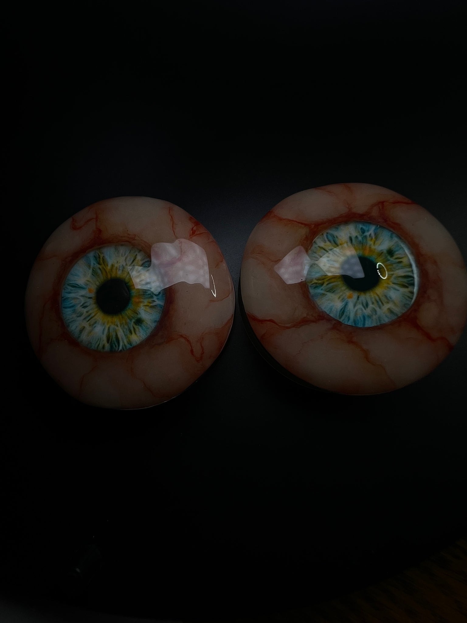 2pc set Glow in the Dark eye ball gauges. Realistic eye with acrylic style plugs. Minimum size 5/8in (16mm) please select size from available options. If your size is not shown please contact for availability. Eye iris is random If a certain color is preferred, please add 3 “Basic” colors to comments at checkout and we will do our best to accommodate. Gauge base will be either, black, white or clear Made to order. Photos are examples.