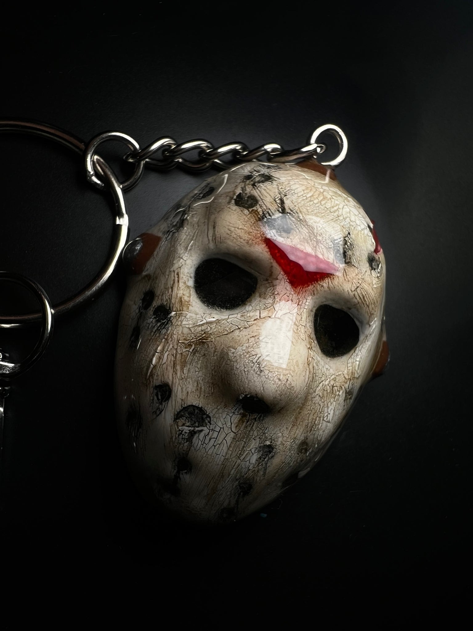 Your favorite Hockey masked killer! Key Chain or Charm for purses, back packs etc. For sure to make you lose your head!. Comes with clasp and ring. Please choose Mask option. Photos are examples, there will be slight variations in paint and design as these are Hand Made one of a kind items. Thank you.